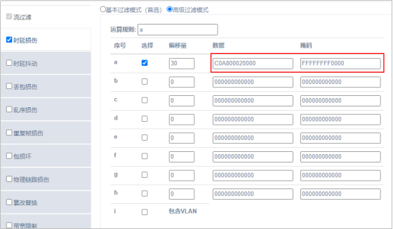 2.损伤仪上创建高级过滤,过滤源 IP,设置 1ms 时延