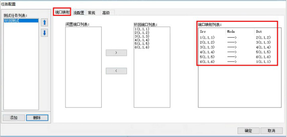 添加测试任务后,在端口映射界面可以看到 端口打流方向;
