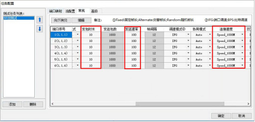 修改帧长,发包模式、发包时间、速率、协商模式、链接速率、双工模式、网关等参数。