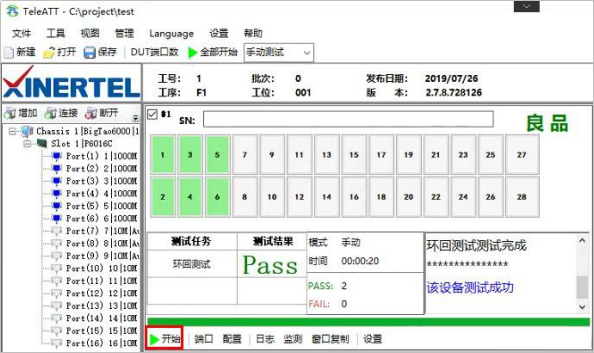 点击 “开始”按钮进行测试,测试完后会有测试结果良品/不良品。