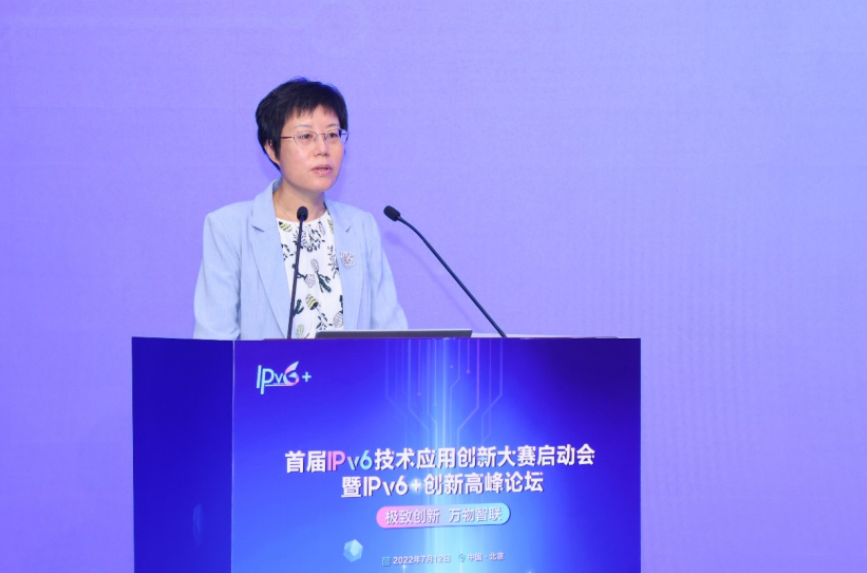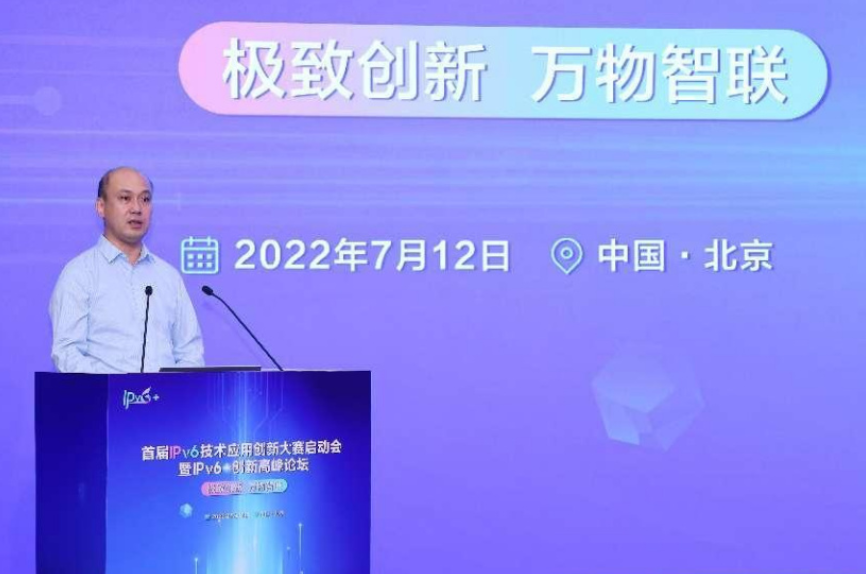2022年7月12日上午,首届“IPv6技术应用创新大赛”在北京正式启动。工业和信息化部信息通信发展司司长谢存,中央网信办信息化发展局副局长、一级巡视员张鹏,教育部科学技术与信息化司副司长舒华等领导出席启动仪式并发表致辞,中国工程院院士邬贺铨发表主题演讲,各行业领导、专家和产业链各方代表共同见证了大赛的启动。中国信息通信研究院(以下简称“中国信通院”)副院长王志勤、中国信通院总工程师敖立主持了会议。