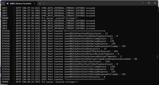 车载终端模块成功与网络测试仪完成GPTP时钟同步。