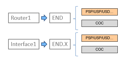发布各个P/PE节点的邻居tlv和end.x with coc
