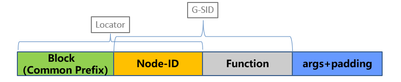 G-SRv6主要采用“减少冗余”+“差异覆盖”方式实现。一个128bit SID中包括Block(即共同前缀Common Prefix)、G-SID(Node ID+Function)及Args/Padding等内容。