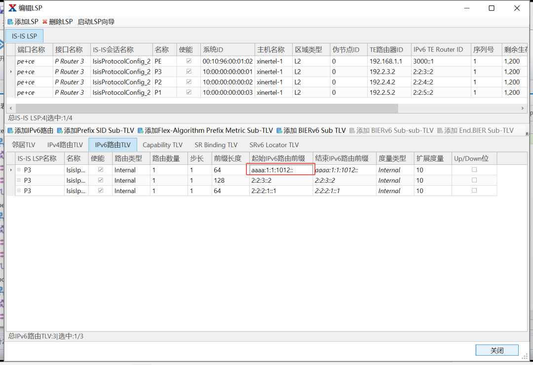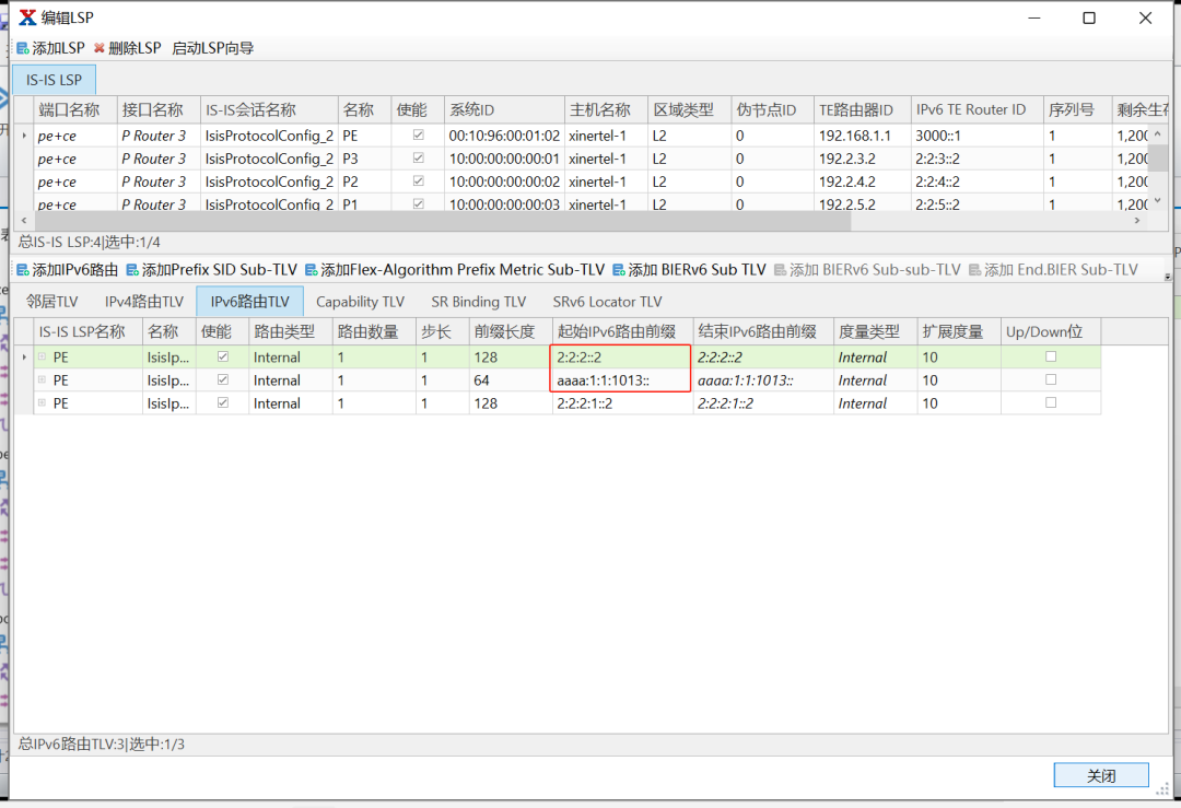 仪表模拟PE时,需要与被测设备建立起VPNv4与VPNv6邻居,建立邻居需要使用IGP域内路由建立,一般情况下以路由可达的loopback接口地址建立。isis通告loopback地址与srv6 locator可达路由,如下所示: