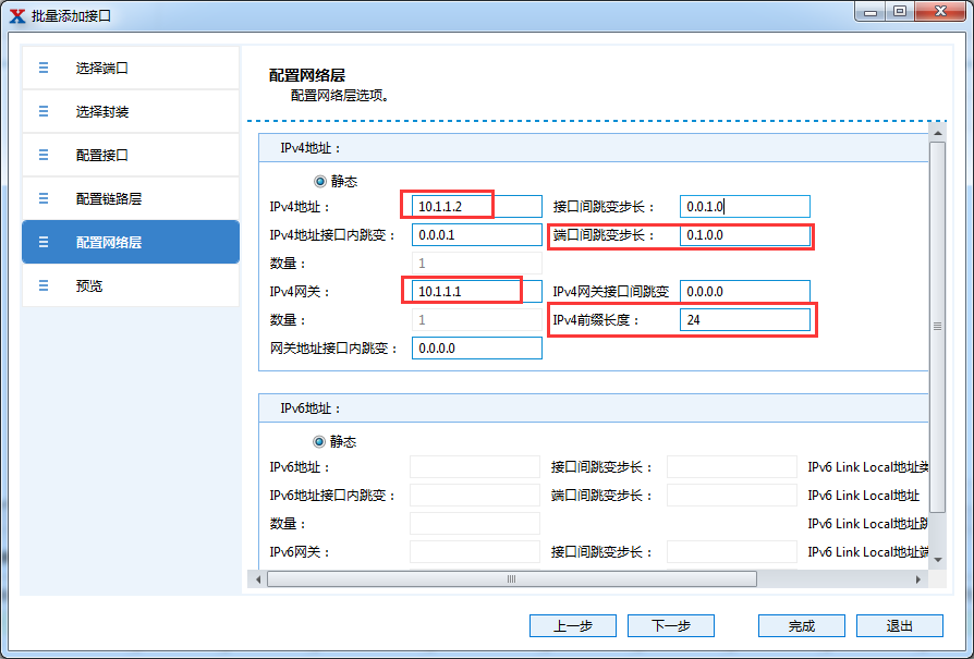 1、先配置接口,选择实际连接的端口下配置接口,配置接口的时候mac不能冲突,IP根据实际需求进行配置,网关一般是设备上直接和测试仪端口连接的那个口的IP;