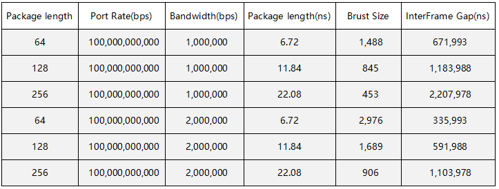 突发流量大小:由Burst Size、Inter Frame Gap/Inter Frame Gap Unit和流量字节大小共同决定。