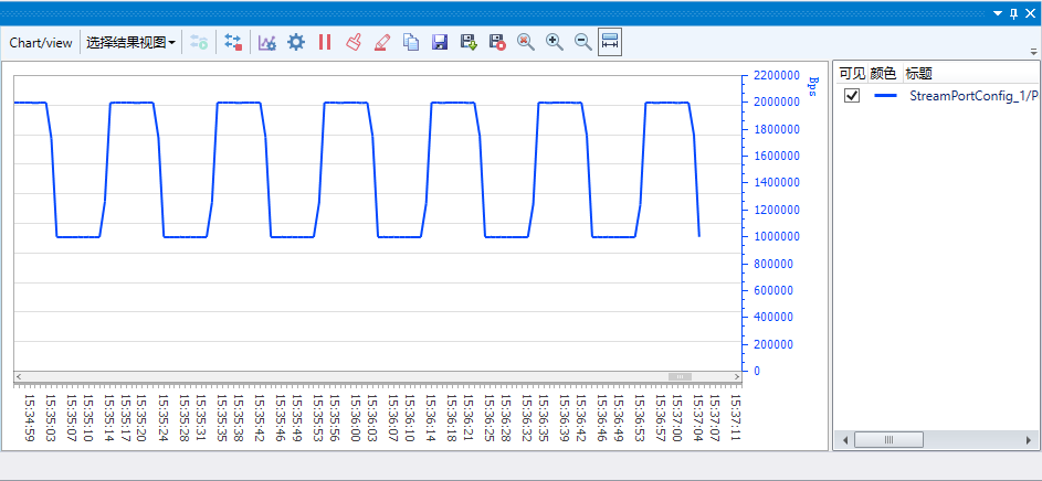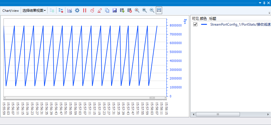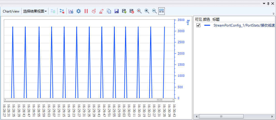 创建图表视图,选择PortStats下的“接收线速(bps)”选项,选择视图,如下图所示,图表视图最小采样间隔为1秒,故可通过抓包查看突发流量。