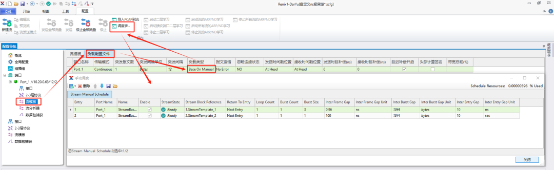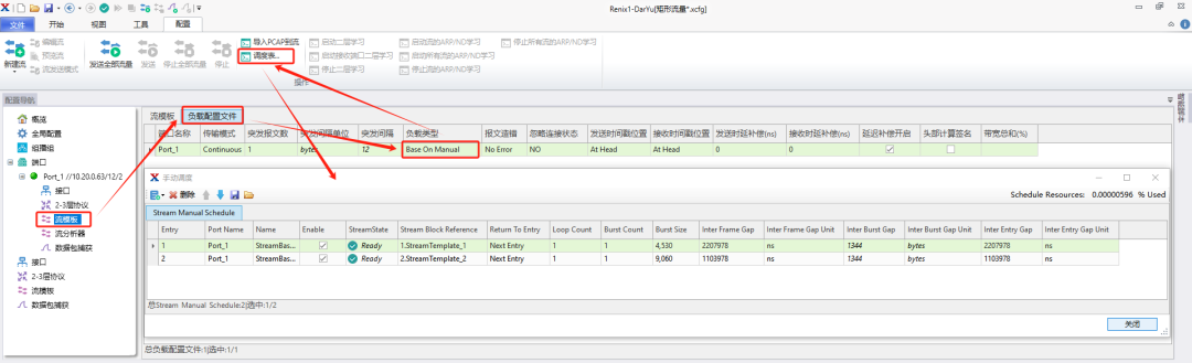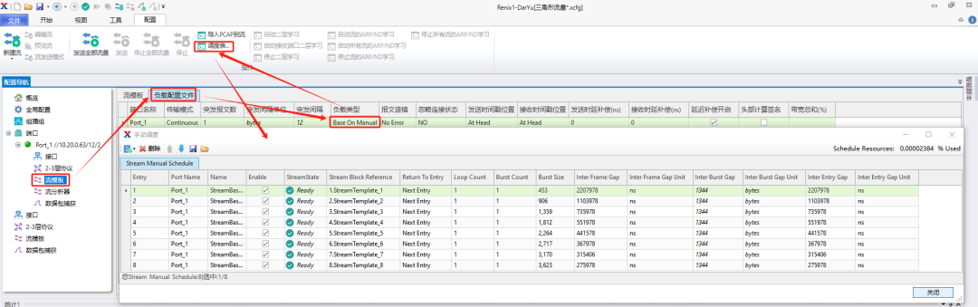 Renix软件支持调度表方式构造复杂流量,如下图所示: