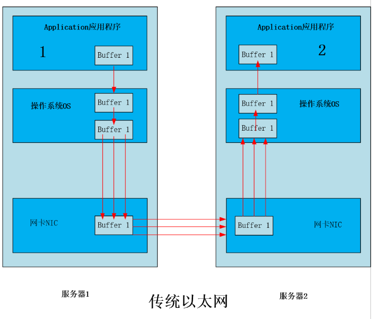 说到Infiniband网络,我们首先提到传统网络数据传输的架构。在传统的互连结构中,操作系统通常是共享网络资源的唯一所有者,这导致应用程序无法直接访问网络。相反,数据传输通常需要依赖操作系统将数据从应用程序的虚拟缓冲区传输到网络堆栈和线路。在传统网络结构中,应用程序需要通过操作系统来实现数据的传输。