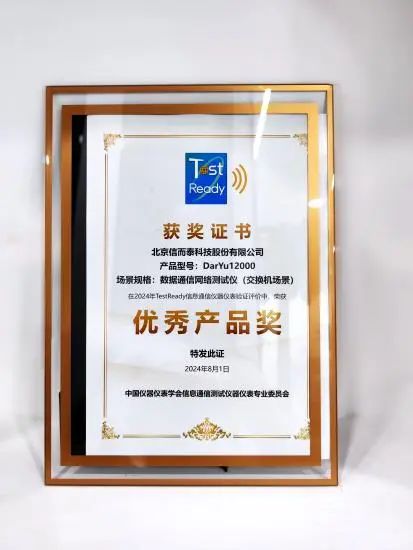 在本届MICONEX上,信而泰董事长李占有先生在主论坛上发表了题为“网络融合技术趋势与测试方案探讨”的演讲,深入剖析了行业发展的未来方向。与此同时,公司产品凭借其卓越性能和创新能力,赢得了中国(国际)测量控制与仪器仪表产业大会组委会颁发的“十佳新品”奖项,以及中国仪器仪表学会信通专委会的“优秀产品奖”。这两大奖项不仅是对信而泰产品的高度认可,也彰显了公司在仪器仪表领域的持续深耕和技术实力。