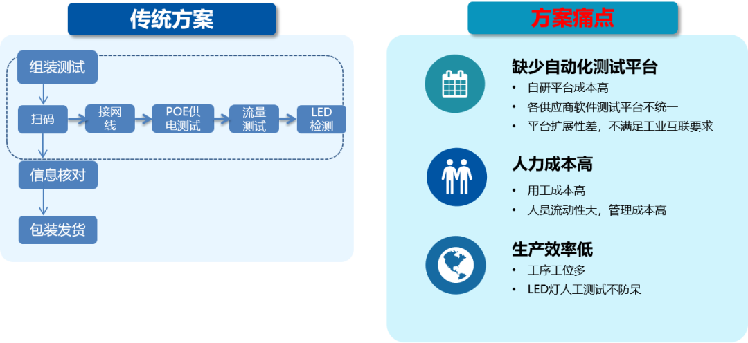 自动化测试方案从人工、测试时间、品控管理方面优势明显。如下是某工厂导入后的对比数据。